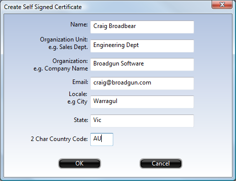 | Create New | When clicked, the following dialog is displayed, allowing you to create your own self