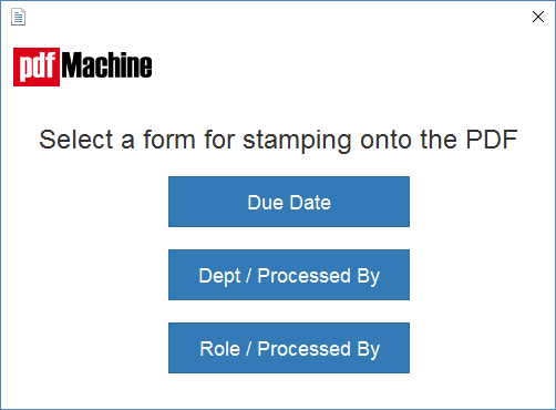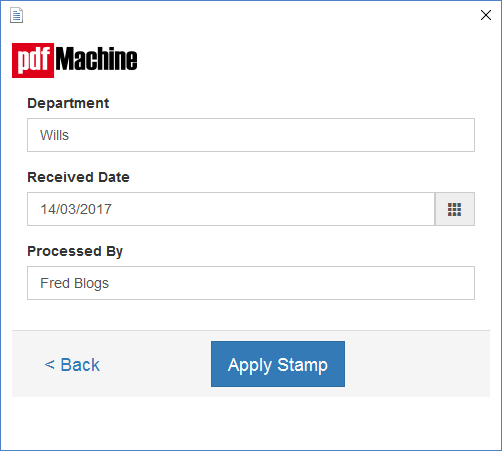 The stamper dialog is a convenient way to apply a filled out form onto a PDF. It can be invoked from the Tools menu in Edit Mode. It can also be automatically launched upon PDF generation by setting the option "Next Action" to "Launch Stamper".